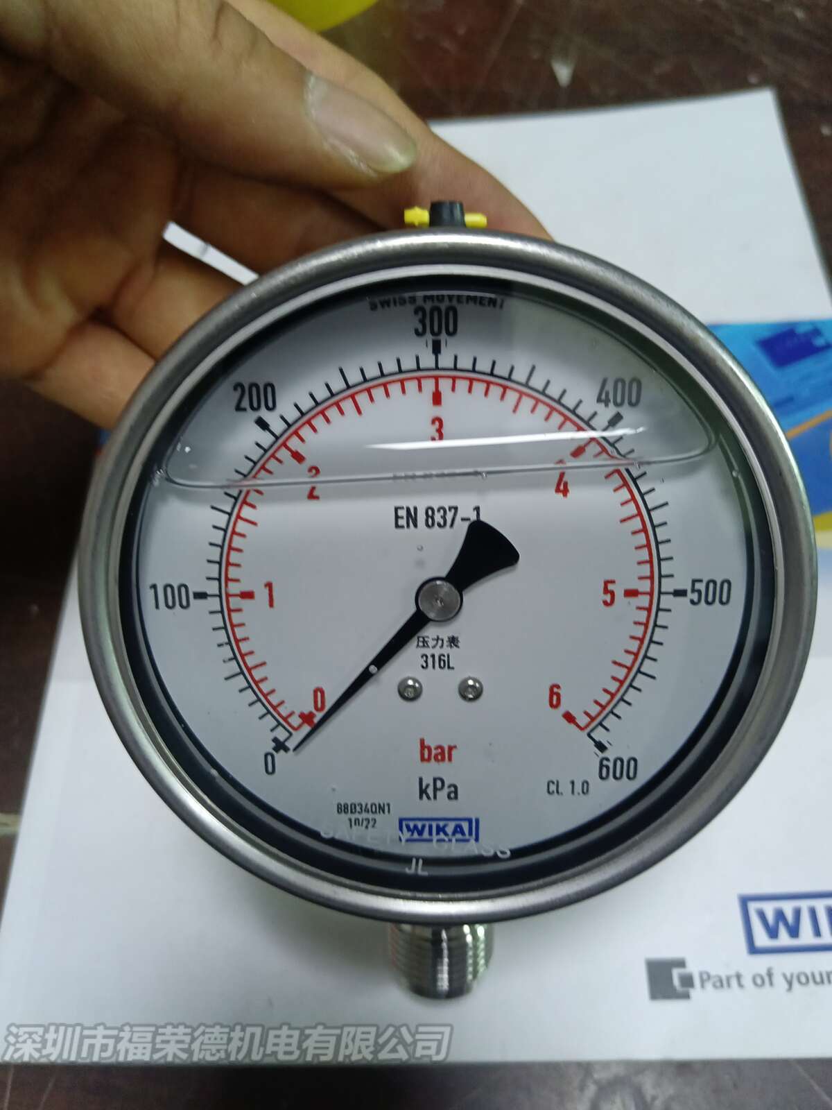 高压侧压力表威卡WIKA 233.50.100量程40MPA 威卡代理 功能特性 优异的循环负载稳定性和抗冲击性能 表壳充液(型号233.50),适用于高动压负载和振动场合 全不锈钢结构 刻度范围0 … 0.06 至 0 … 160 MPa [0 ... 10 至 0 ... 20,000 psi] 深圳福荣德长期备货WIKA压力表产品如下: 商品名称 规格型号 WIKA压力表233.50.100/0-60Mpa/psi/侧接/1/4NPT/充硅油 WIKA压力表233.50.100/0-1 MPa/径向/G1/2B/充油 WIKA压力表233.50.100/0-2.5MPA/PSI/轴向带边/G1/4B/充油 WIKA压力表233.50.100/0-10MPA/psi/轴向/G1/4B WIKA压力表233.50.100/0-60MPA/PSI/背接前带边/G1/2B
