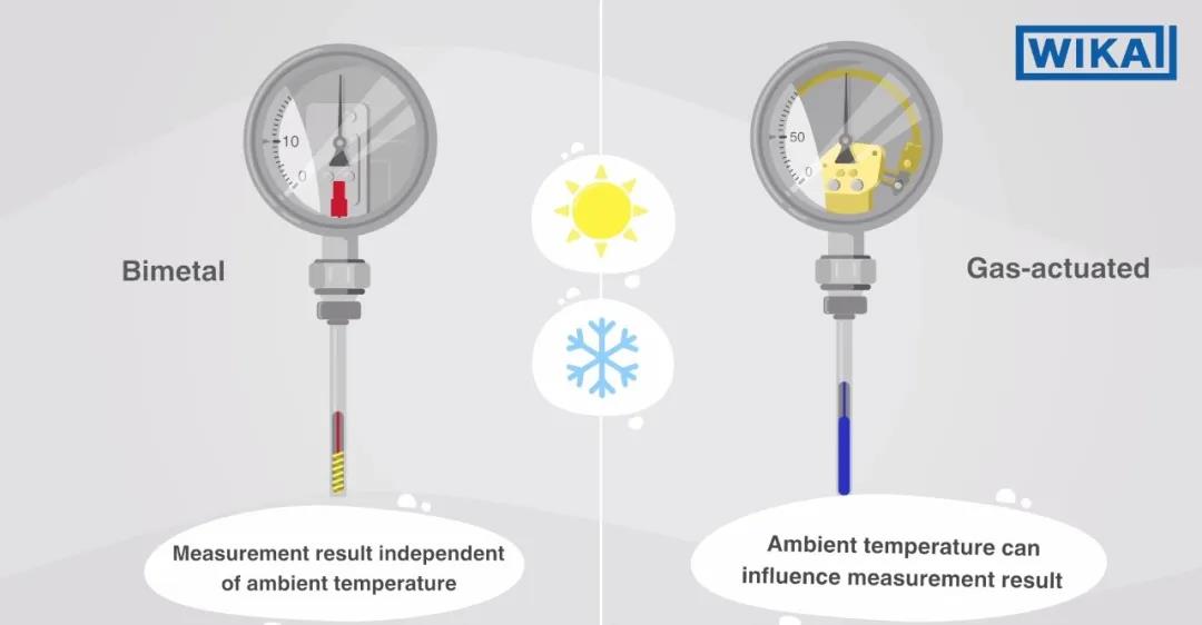 在工业温度测量领域,通常使用两种表盘式温度计:双金属温度计和气包式温度计。需根据响应时间、温度限值和应用范围等因素来选择使用何种温度计。