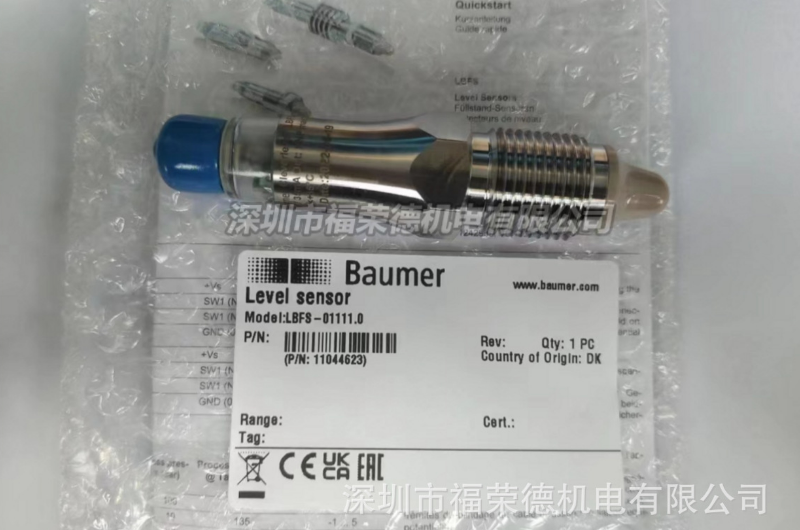 瑞士堡盟Baumer LBFS-01111.0液位开关描述 LBFS物位开关设计用于储罐内物位检测,介质分离,以及空管检测或泵空转保护。传感器探头向储罐内发射出高频扫描信号。介质与探头以及金属罐壁或金属安装附件形成电容,当扫描频率与电容频率相同时,产生共振,输出开关点信号,电容频率取决于介质的介电常数(DK)。提供两种输出信号:常开(NO)和常闭(NC)。在介质物位波动的情况下(例如储罐填充过程中),可使用FlexProgrammer 9701手操器调节信号阻尼时间。此外,常开和常闭输出信号可以被反向。测量精度高,且不受罐内安装位置的影响。在Flex软件中,可针对泡沫、气泡、冷凝液以及粘性介质设置不同的补偿值。 堡盟baumer液位传感器物位开关LBFS-01111.0 Flex软件还带有调节功能,允许用户可根据具体介质类型对传感器进行调节。LBFS物位开关既可以测量水和油等液体介质的液位,也可以测量干燥固体介质的料位,例如煤尘或塑料颗粒。LBFS物位开关可配备PNP输出以及NPN输出。过程连接的密封非常简单,可使用PTFE胶带或特殊的焊接接头(针对卫生型应用)。